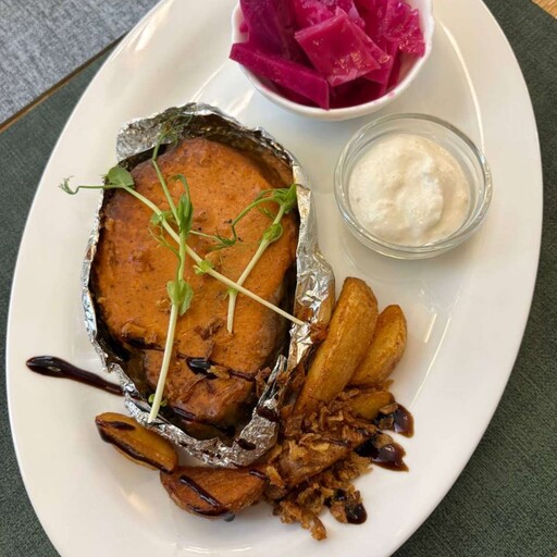 пекинская капуста, свинина запеченная, сливочный соус с хреном, зелень 190 г