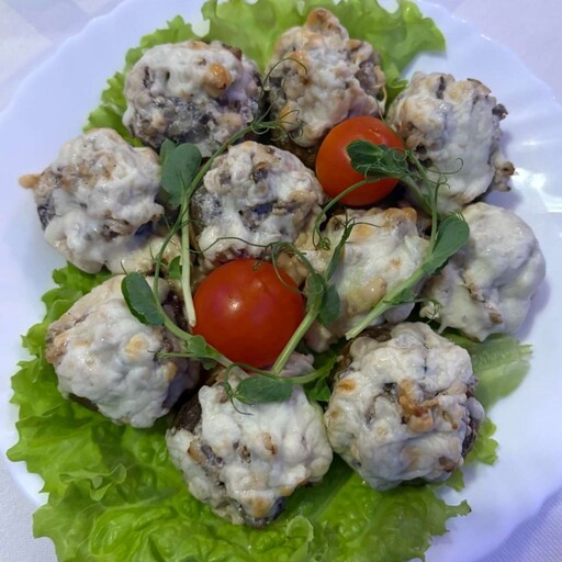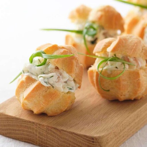 профитроли, твороженный сыр, зелень